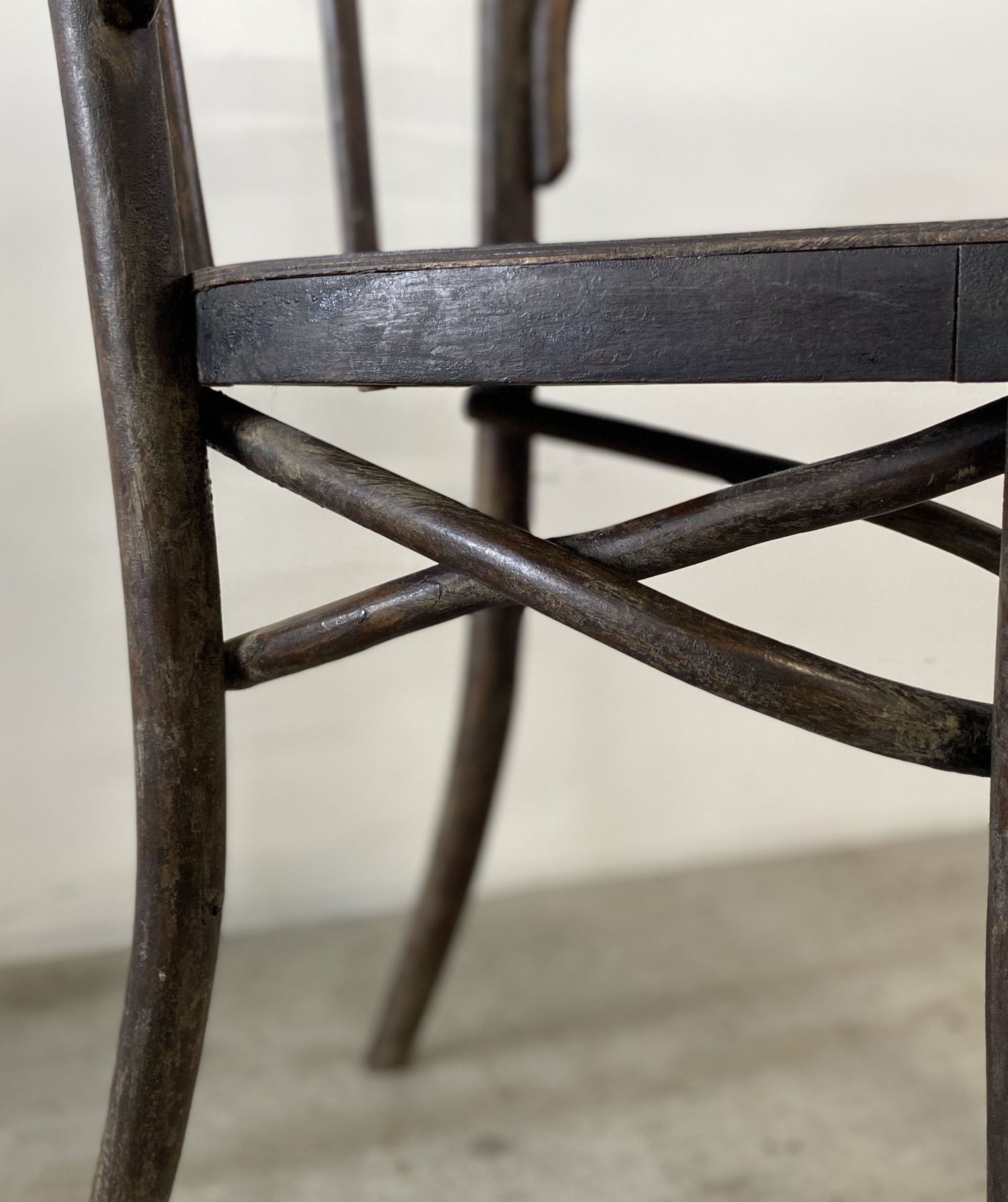 アンティークの使い込まれた曲木の雰囲気のある椅子。